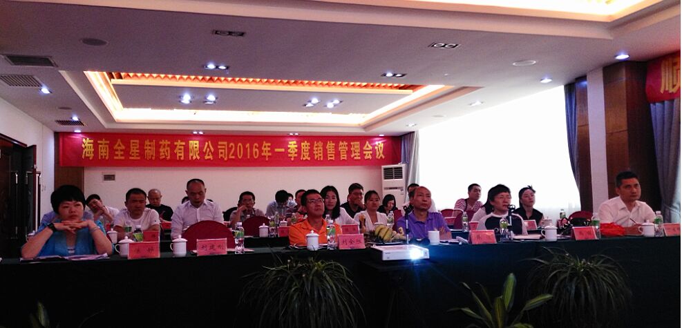 2016年4月14日-15日,海南全星制藥有限公司在烏蘭大酒店召開2016年一季度銷售管理會議,公司董事長兼總經(jīng)理劉全勝及各部門總監(jiān)、營銷部全體成員及全國各省區(qū)經(jīng)理出席會議,會議由營銷總監(jiān)丁月祥主持。