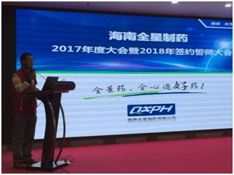 海南全星制藥2017年度大會暨2018年簽約誓師大會圓滿結(jié)束2017年12月25-28日,海南全星制藥有限公司于海口永嘉大酒店召開了2017年度大會暨2018年簽約誓師大會。大會以“新起點·轉(zhuǎn)型·創(chuàng)新·合規(guī)”為主題,總結(jié)2017年銷售工作及存在問題,并對2018年做出了詳盡的銷售工作計劃。會議在暖場片及參會人員熱烈的掌聲中拉開帷幕。